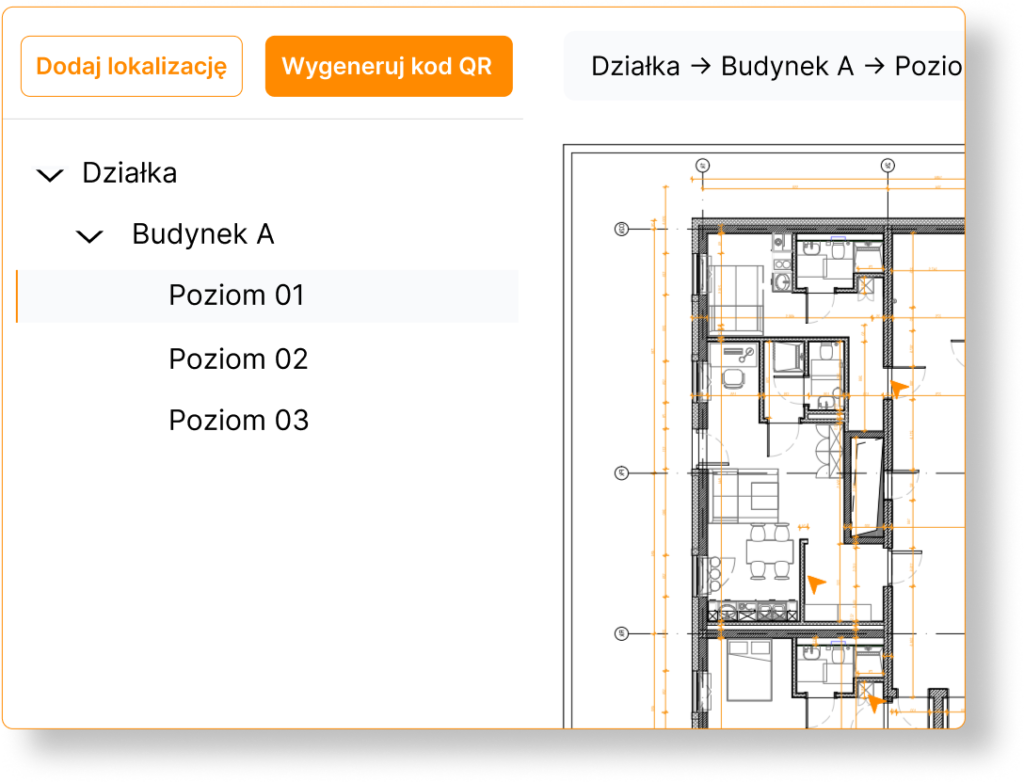 Tak. Moduł lokalizacji pozwala zbudować cyfrowe drzewo obiektu (budynek → piętro → lokal → pomieszczenie). Do każdej lokalizacji można przypisywać usterki, dokumenty i wnioski — wiesz dokładnie, co dzieje się w każdej części projektu.